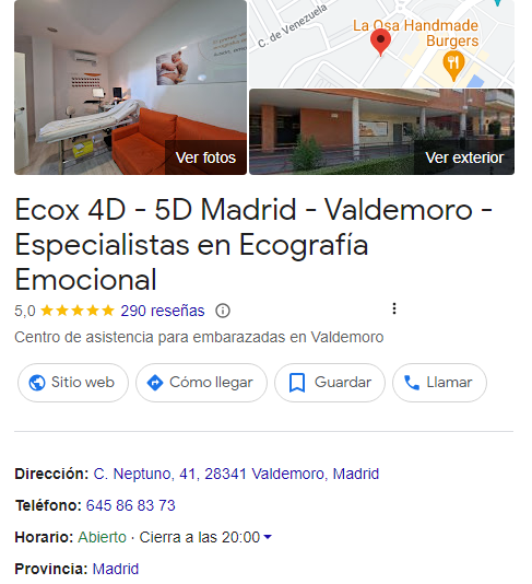 Bienvenidos al Centro ecox 4D-5D Valdemoro. Nuestro centro de ecografías 4D-5D se encuentra situado en Calle Neptuno, 41, 28341.